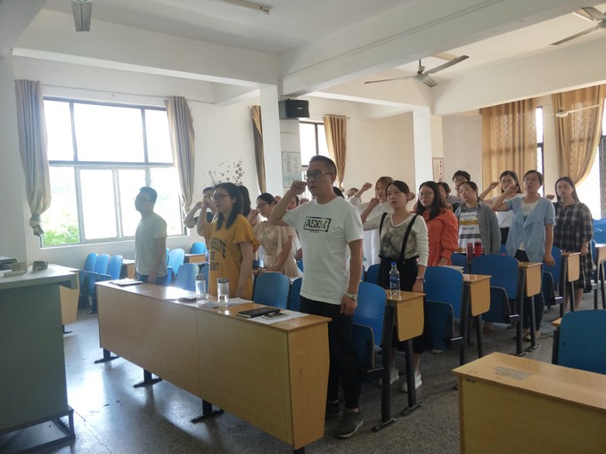 随后全体党员开展支部主题党日活动。罗蕾老师带领全体党员重温入党誓词,集体诵读党章第二章第十条《党的民主集中制的基本原则》,学习了《干部选拔任用工作监督检查和责任追究办法》等相关文件内容。各位党员结合自身实际围绕“爱校”主题开展了深入研讨。