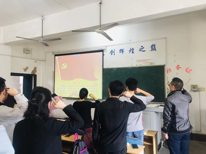 会议上,刘书记首先带领全体党员面对党旗,重温入党誓词。