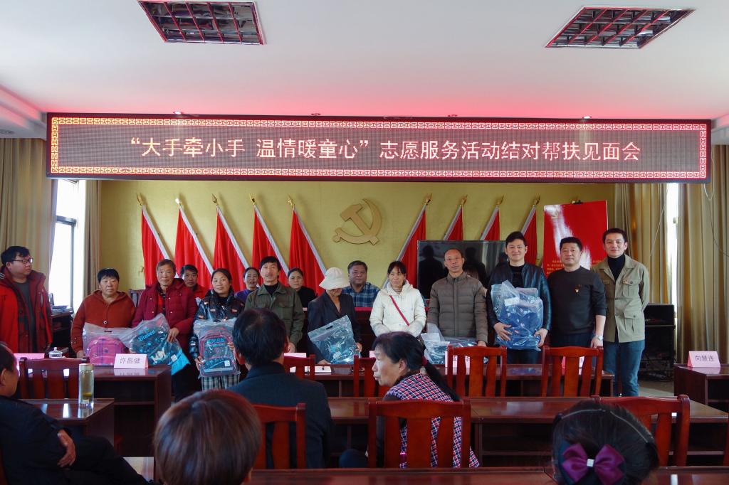 仪式后,yl7703永利集团教师代表为留守儿童家长赠送书包,并到二楼图书室进行“爱心图书角”图书捐赠及挂牌仪式。