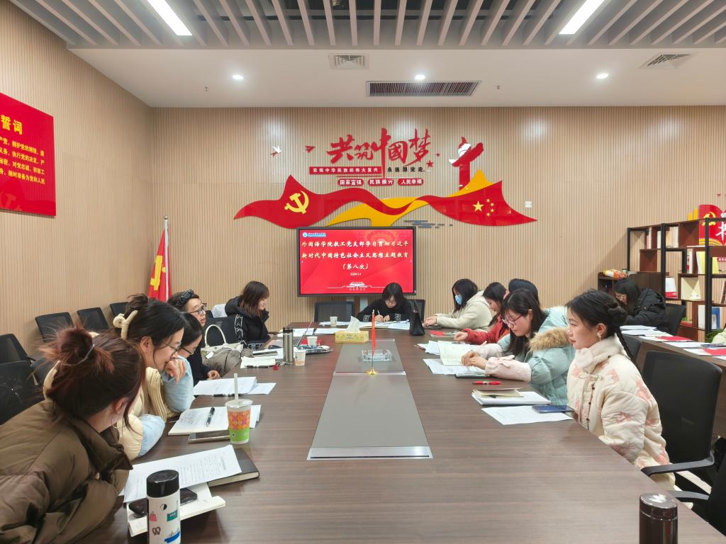 本网讯(通讯员 许静婷)1月4日下午,外国语学院组织主题教育第九次集中学习研讨,深入学习习近平新时代中国特色社会主义思想,会议由教工支部书记韩翠萍主持。