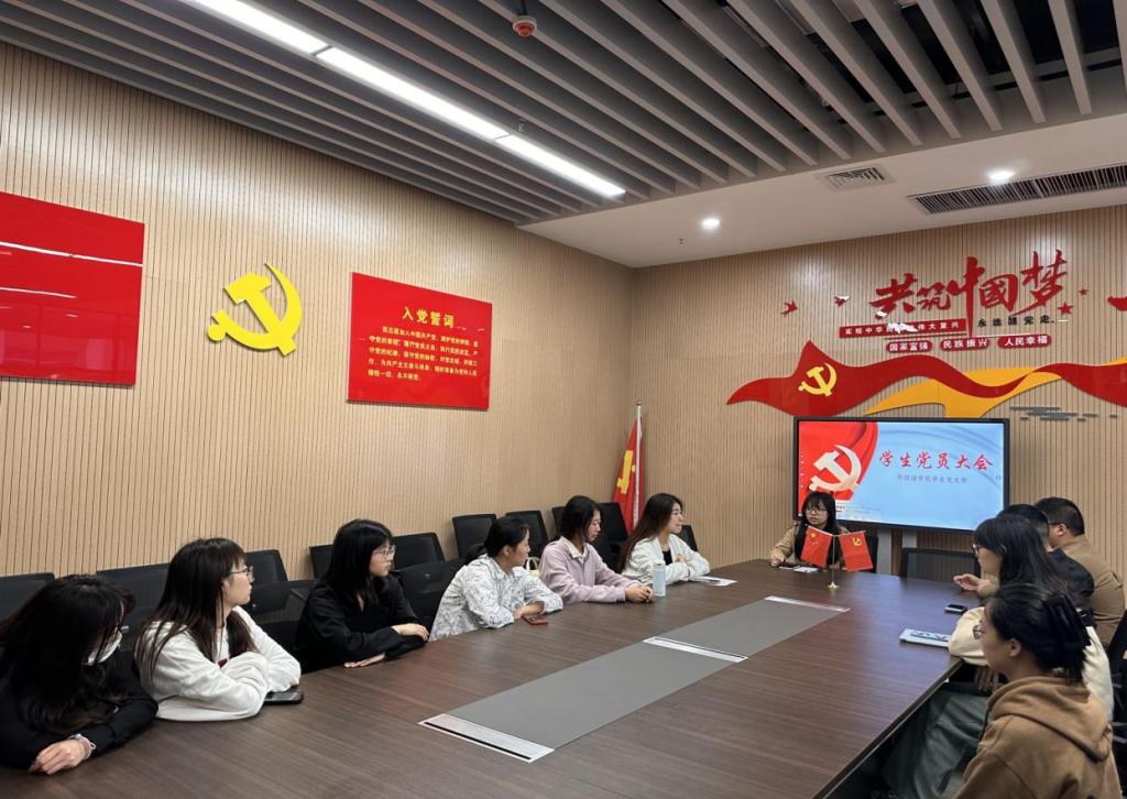 本网讯 2024年4月19日,外国语学院学生党支部在外国语学院党员活动室开展党员大会和新一届支委会,党支部全体党员参加会议,会议由外国语学院辅导员许静婷主持。