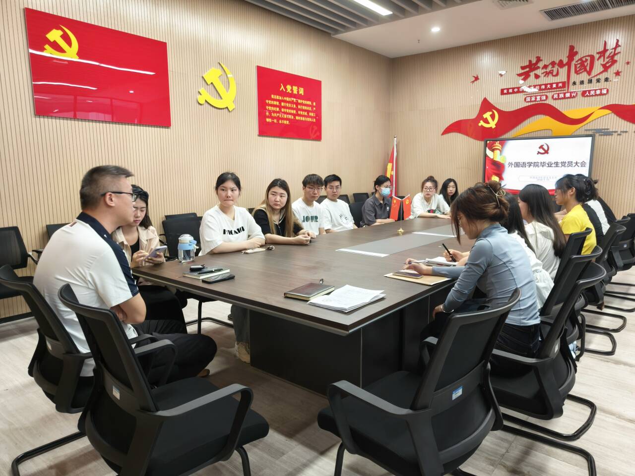本网讯(通讯员 赵安勇)青春无问东西,岁月自成芳华。2024年5月15日上午,外国语学院于图书馆526召开了20级毕业生党员大会。外国语学院党总支书记王玲玲、副书记刘鋆锋、辅导员许静婷及全体毕业生党员参加会议。