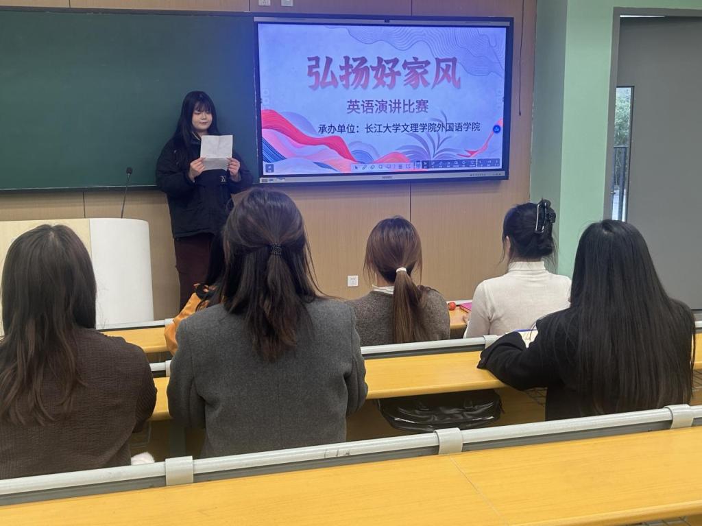 本网讯 为深入学习贯彻习近平总书记关于注重家庭家教家风建设的重要论述,弘扬中华民族优秀的家风文化,助力清廉学院建设,10月17日,外国语学院学生党支部在教学楼开展了“弘扬好家风”英语演讲比赛。