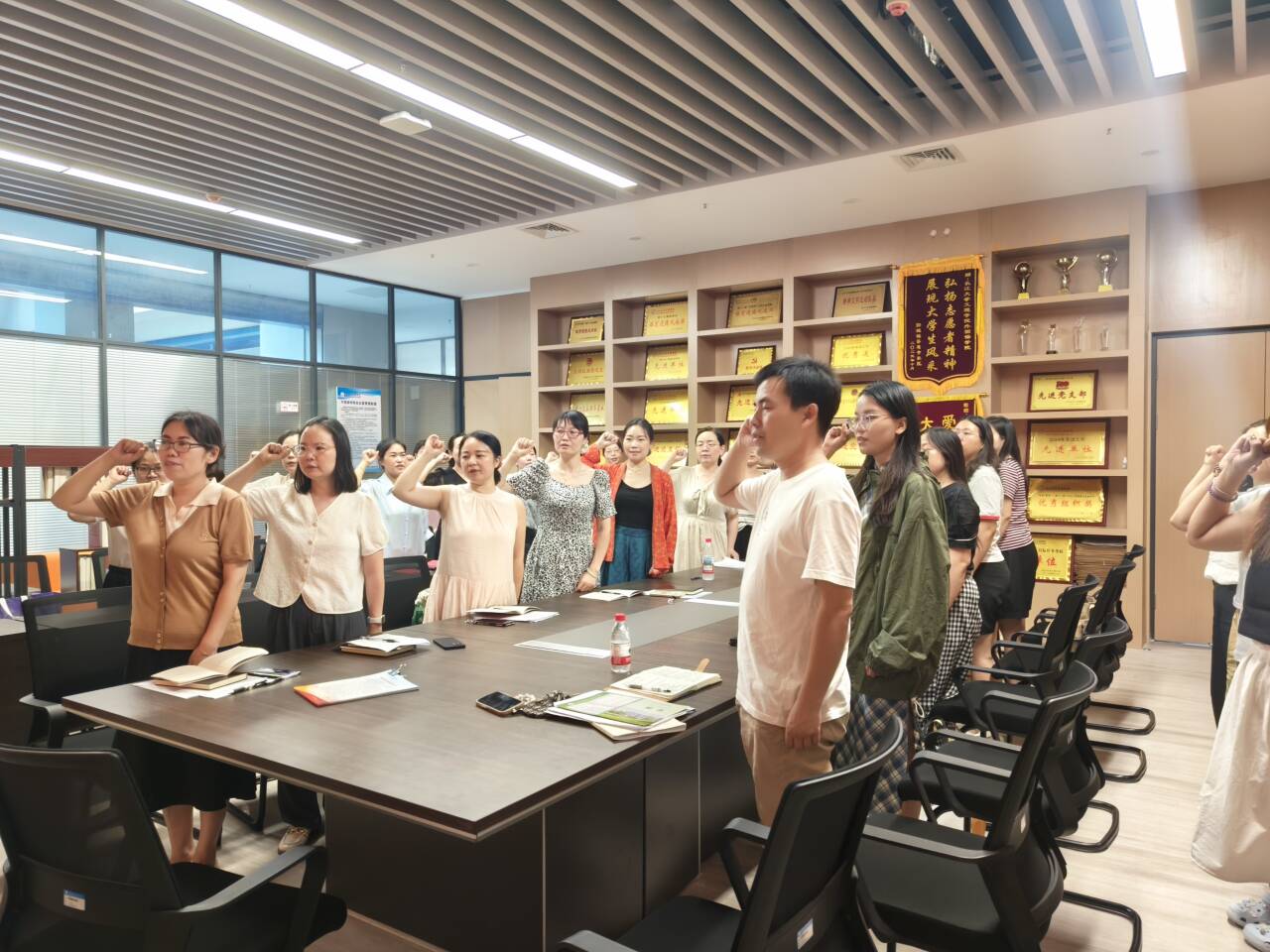 会议伊始,王玲玲书记带领全体党员重温入党誓词,共同学习习近平总书记在中共中央政治局第二十一次集体学习时强调 坚持从抓作风入手推进全面从严治党 把新时代党的自我革命要求进一步落实到位;习近平总书记在山西考察时强调 努力在推动资源型经济转型发展上迈出新步伐 奋力谱写三晋大地推进中国式现代化新篇章;石泰峰同志在党的十八大以来深入贯彻中央八项规定精神的成效和经验交流研讨座谈会上的讲话;王忠林在省委党的建设工作领导小组(扩大)会议上强调 “七查七看”扎实开展学习教育“回头看” 动真碰硬 坚决把查摆问题改彻底治到位;省委常委会召开学习教育查摆问题情况检视交流会 切实增强深查实改坚定自觉 推动学习教育取得更大成效 王忠林主持并作总结讲话;王忠林到荆州调研并主持召开座谈会时强调 坚定信心 加压奋进 努力当好江汉平原高质量发展排头兵;云南省曲靖市统计造假、政治生态恶化的典型案例;湖北省委学习教育工作专班 省纪委办公厅 关于黄冈市蕲春县7名党员干部在学习教育期间违规吃喝严重违反中央八项规定精神问题的通报;湖北省委学习教育工作专班 省纪委办公厅 关于江陵农村商业银行3名管理人员在学习教育期间违规吃喝严重违反中央八项规定精神问题的通报;中共湖北省委深入贯彻中央八项规定精神学习教育工作专班 中共湖北省纪委办公厅关于7起党员干部、公职人员酒驾醉驾典型问题的通报;yl7703永利集团会议精神 坚定信心决心铆足干劲拼劲学校召开2025年暑期工作部署会;锚定一流目标建功支点建设王建平讲授“七一”专题党课。