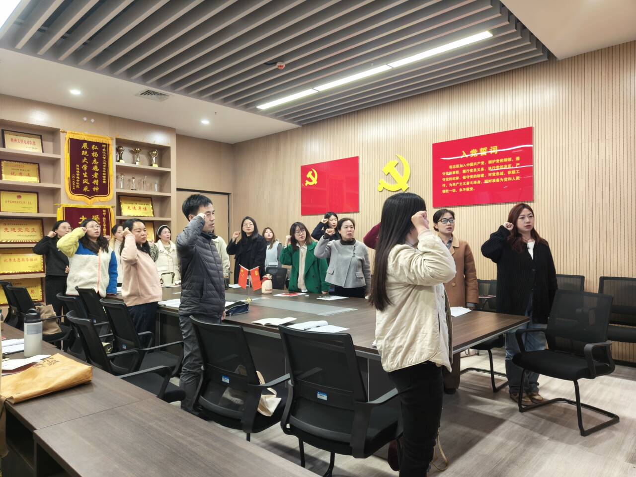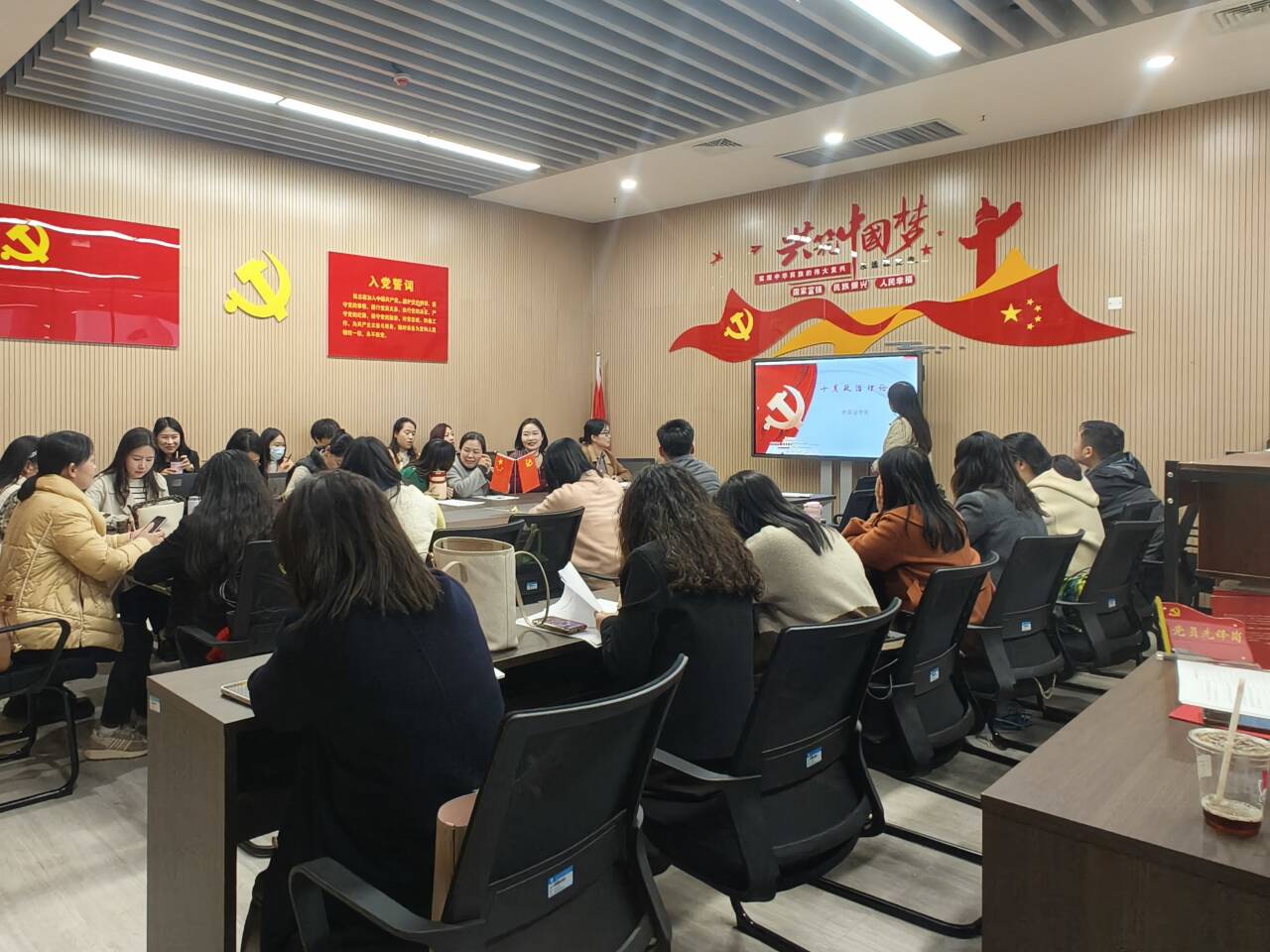 随后,开展支部主题党日活动。付春霞老师带领全体党员重温入党誓词,学习《中国共产党章程》(总纲);共同学习党的二十大精神导学微党课;集中学习庆祝中华人民共和国成立76周年招待会在京举行 习近平总书记发表重要讲话;习近平总书记:完整准确全面贯彻新时代党的治疆方略 努力建设团结和谐、繁荣富裕、文明进步、安居乐业、生态良好的社会主义现代化新疆;中共中央政治局召开会议 讨论拟提请二十届四中全会审议的文件 中共中央总书记习近平主持会议;习近平总书记在中共中央政治局第二十二次集体学习时强调 系统推进我国宗教中国化 积极引导宗教与社会主义社会相适应;习近平总书记对党校(行政学院)工作作出重要指示强调 坚持党校姓党牢记党校初心 更好为党育才为党献策;《求是》杂志发表习近平总书记重要文章《中华民族共同体的形成和发展是人心所向、大势所趋、历史必然》;中共中央印发《中国共产党思想政治工作条例》;中共中央印发《中国共产党党校(行政学院)工作条例》;中共中央办公厅转发《中央宣传部、中央组织部关于认真组织学习〈习近平谈治国理政〉第五卷的通知》;中央纪委国家监委公开通报八起违反中央八项规定精神典型问题;中共湖北省委深入贯彻中央八项规定精神学习教育工作专班 中共湖北省纪委办公厅关于6起违反中央八项规定精神典型问题的通报;中共湖北省委深入贯彻中央八项规定精神学习教育工作专班 中共湖北省纪委办公厅关于5起党员干部、公职人员酒驾醉驾典型问题的通报。