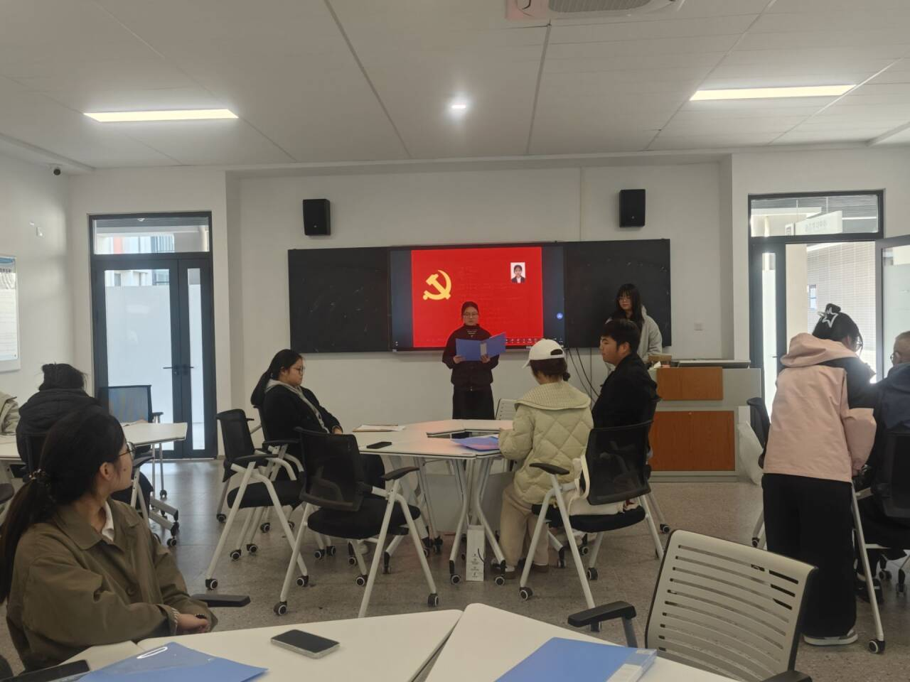 会议伊始,由鄢语彤同志报告出席会议的党员人数。其次,张前程等6名同志围绕思想提升、学业进步、工作实践等多个方面,向党组织详细汇报了自己在预备期内的综合表现,并郑重提交转正申请。预备期内,6位预备党员始终坚持学习党的理论知识,时刻以党员标准严格要求自己,用实际行动彰显入党决心。接着,入党介绍人许静婷老师、钟燚老师对是否同意接受张前程等同志为正式党员发表意见。随后,由外国语学院学生党支部书记刘鋆锋和全体正式党员讨论并进行投票,表决结果全体通过。