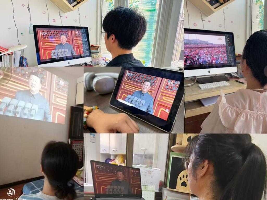 观看现场,全体师生聚精会神,共同见证庄严的历史时刻。