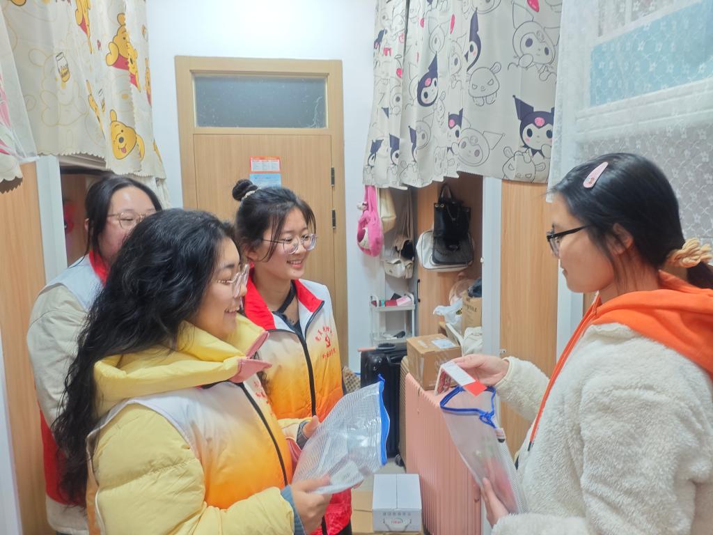 为确保物资发放有序高效,党员志愿者提前精准统计考研学生的宿舍分布、联系方式及作息习惯,建立起“一人一档”服务台账。考虑到考生复习时间紧张,服务队分组开展“送暖上门”,将“考研暖心礼包”逐一送至考生手中。