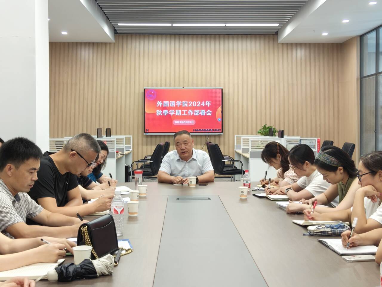 本网讯(通讯员 许静婷)8月31日下午,外国语学院在图书馆518会议室召开2024年秋季学期工作部署会。学校领导李兴祥院长到外国语学院检查指导新学期工作,外国语学院全体教职工参加会议。会议由外国语学院党总支书记王玲玲主持。