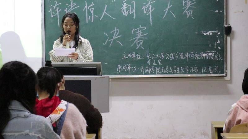(通讯员 田雨 马心怡)11月10日晚7点,外国语学院团总支学生会于一教308教室举行“译语惊人”翻译大赛决赛。外国语学院副院长罗丹,副教授石从红,商务教研室主任李琳,全能英语讲师梅妮担任本次比赛的评委。王媛,郭雨婷两位同学主持,20位选手参加比赛。