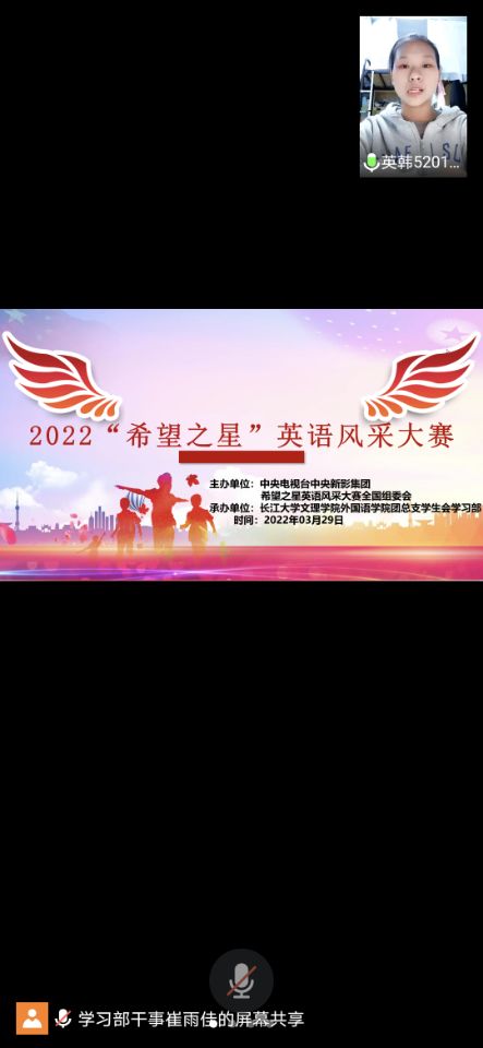 (通讯员 杨吉)3月29日,由中央电视台中央新影集团和中国人民大学出版社,希望之星湖北省组委会和湖北省演讲协会英语演讲专业委员会联合主办,yl7703永利集团外国语学院团总支学生会学习部承办的2022年度“希望之星”英语风采大赛圆满结束。本次比赛由石从红老师和高璇老师担任评委。