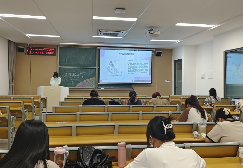 (通讯员 胡世丹)为了进一步加强同学们对当前大学生就业形势的认识,增强就业观念、提高自身竞争能力。外国语学院于5月25日晚七点组织各班开展“大学生就业观念”主题团课。本次团课由各班辅导员、团支书主持。
