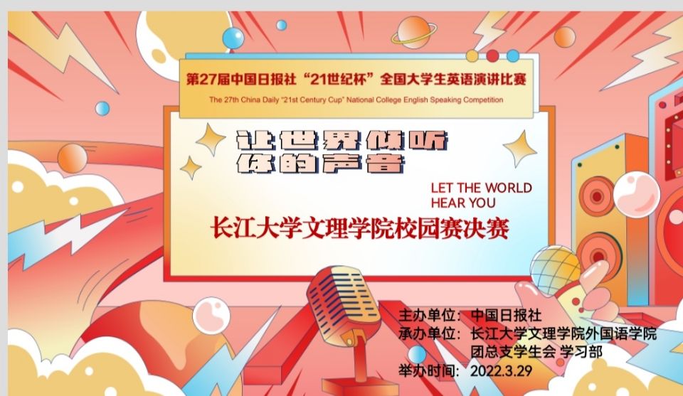 外国语学院举办第27届中国日报社“21世纪”全国大学生英语演讲比赛校园赛