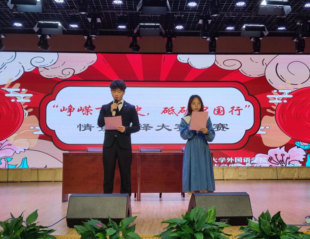 (通讯员 张明月)11月30日晚19点,外国语学院团总支学生会体育部和纪检部于食堂三楼多功能报告厅联合举办“峥嵘百年史,砥砺中国行”情景演绎大赛决赛。外国语学院辅导员许静婷、团总支学生会主席燕军,副主席晏亮、雷琦担任本次比赛评委。