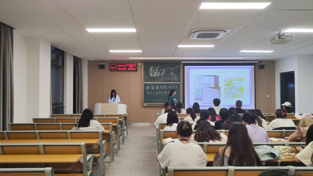 (通讯员 刘钰)6月7日晚七点,外国语学院团总支学生会工作例会于A-308教室召开,辅导员宋静静和全体学生会成员参加。