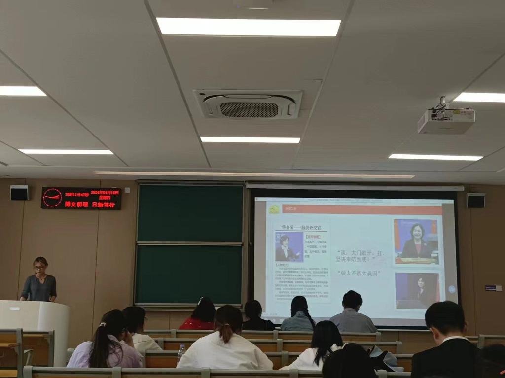 本网讯(通讯员 钟燚)为了持续深化学习宣传贯彻习近平新时代中国特色社会主义思想,激发广大青年学生的学习热情和创新精神,4月18日下午三点,外国语学院于1教308教室举办了“悦学习·跃青春—百生讲坛”优秀主讲人初赛活动。本次比赛旨在通过学生自己的讲述,让同学们更加了解和掌握这一重要思想的核心内容和精神实质。此次活动由外国语学院辅导员许静婷老师、钟燚老师、宋静静老师和侯韦老师担任评委。