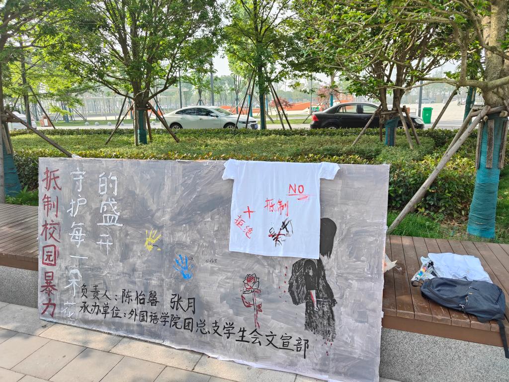 本网讯(通讯员 黄可欣)为呼吁全体学生抵制校园暴力,营造充满爱和尊重的校园氛围。5月26日,外国语学院于B栋宿舍楼旁举办“抵制校园暴力,守护每一朵花的盛开”特色活动。