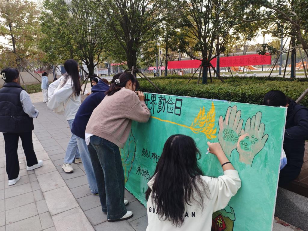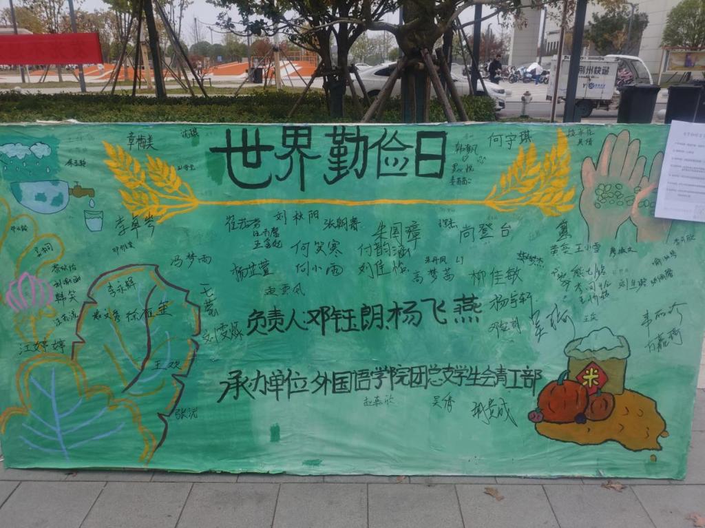 本网讯(通讯员 沈琪)11月8日,外国语学院团总支学生会青工部组织开展世界勤俭日签字活动。