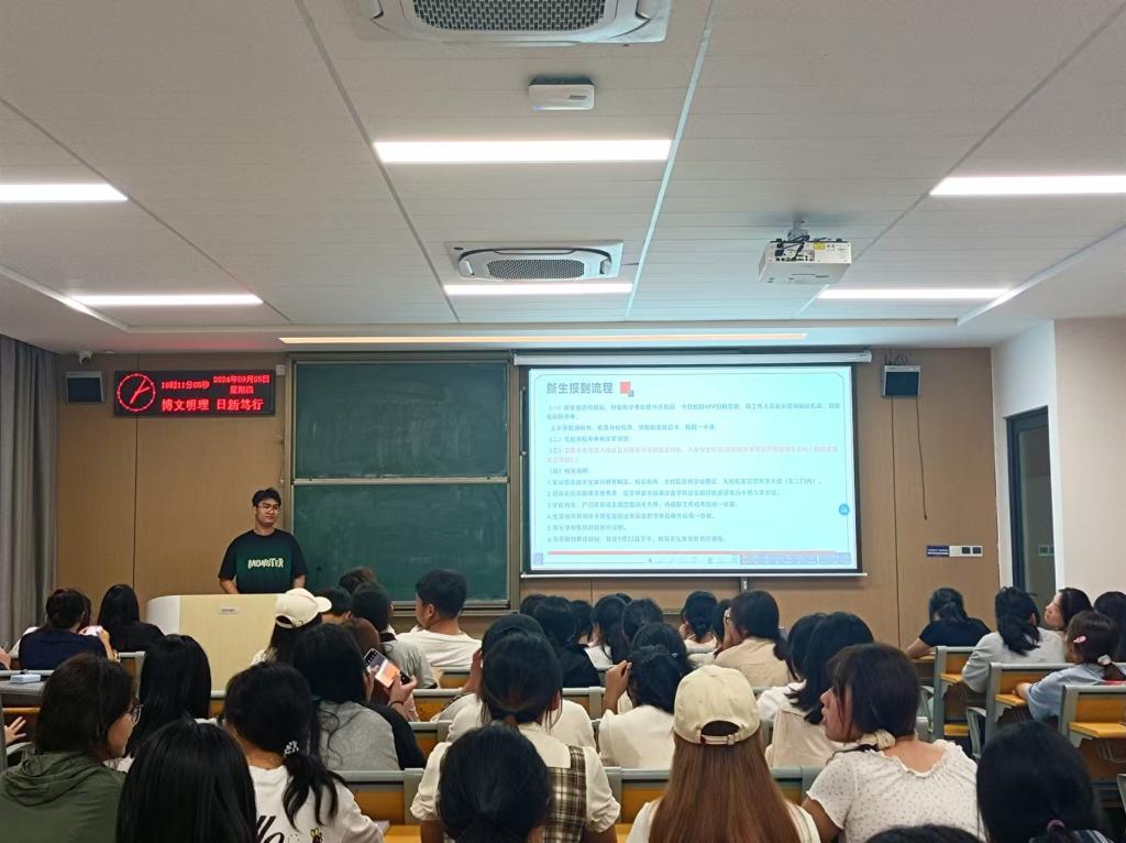 会议上,辅导员老师详细讲述了迎接新生的流程,包括报到注册、入学引导等环节。同时,针对新校区和南校区接新生的注意事项进行了重点强调并鼓励同学们以热情、周到的服务展现外国语学院的风采。