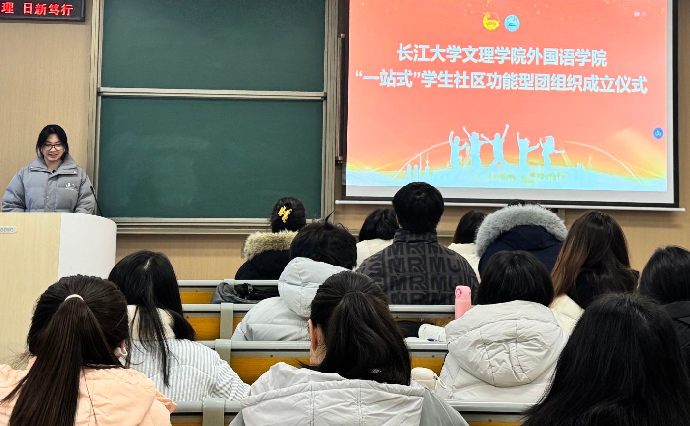 本网讯(通讯员 吴潇堉)1月8日晚,外国语学院于01-A-308举行“一站式”学生社区功能型团组织成立仪式。外国语学院党总支副书记刘鋆锋、辅导员许静婷老师、辅导员钟燚老师、全体学生会以及团员代表参会。成立仪式由党总支副书记刘鋆锋主持。