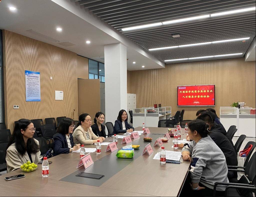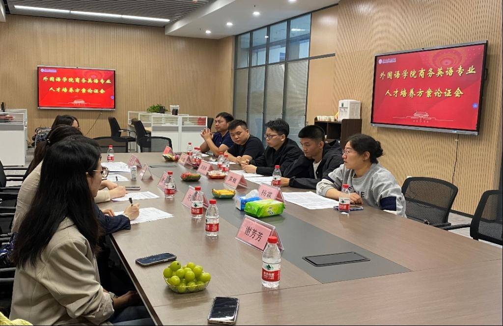外国语学院院长许晓艳、各专业负责人、教研室主任及骨干教师参与论证。此外,学院特邀刘江盼(荆州市教育科学研究院教研员)以及在全国各大中小学任教的共9名优秀校友参加英语(师范)专业人才培养方案论证会。同时,邀请江超(深圳市智创汇科技有限公司总经理)等6名在各大公司担任主要职务的优秀校友参加商务英语人才培养方案论证会。