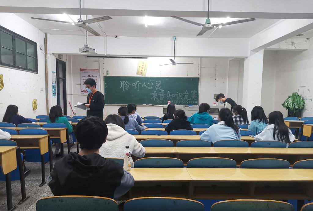 此次活动包括“嘘!静心听”和“噪音知识竞赛”两个部分。“嘘!静心听”游戏过程中,参赛选手认真观察搭档的口型与手势,并回答出相应的答案,每组都斗志昂扬,配合默契。噪音知识竞赛活动中,选手们全神贯注,奋笔疾书,演绎了一场精彩的脑力大比拼。
