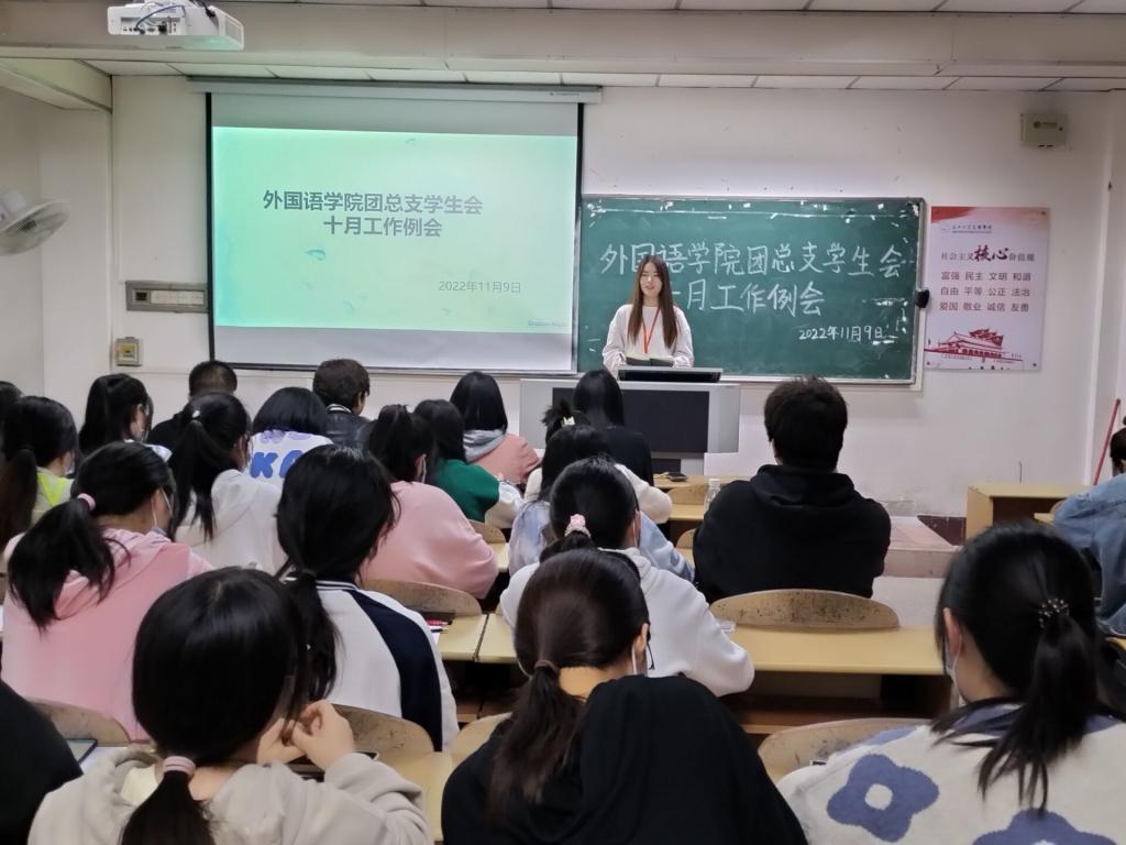 (通讯员 刘金霖)11月9日晚七点半,外国语学院团总支学生会于一教308教室召开十月工作例会,全体学生会成员参加。