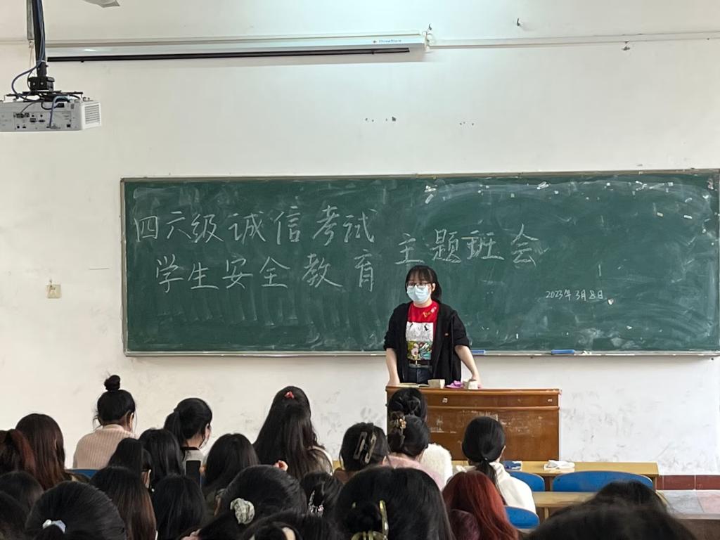 (通讯员 刘钰)3月8日-9日,外国语学院各班召开3月份四六级考试诚信教育及校区搬迁学生安全教育主题班会。