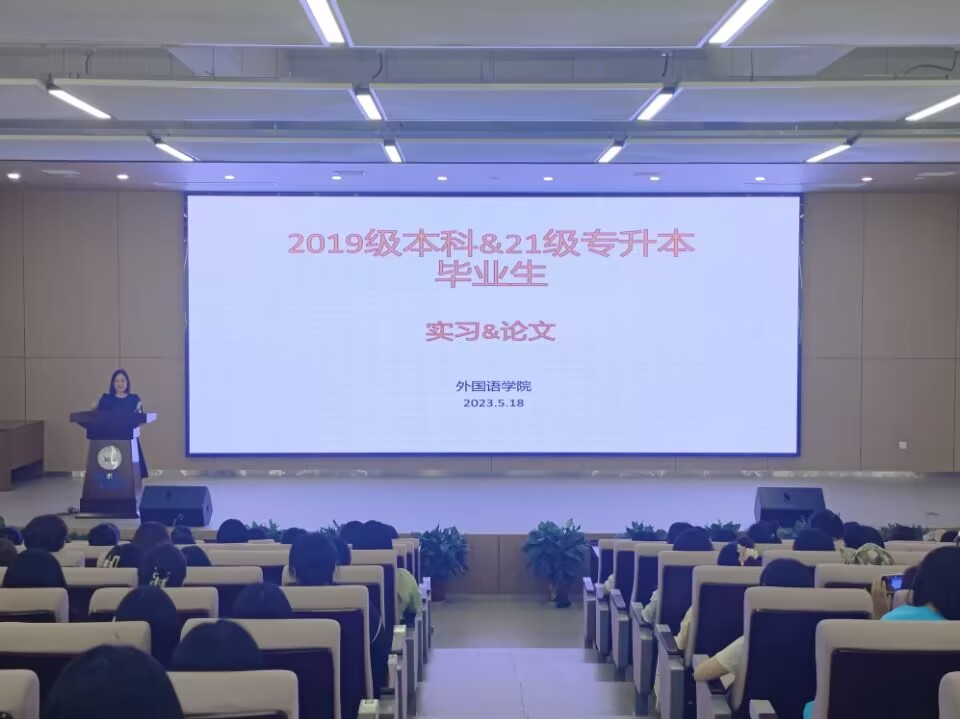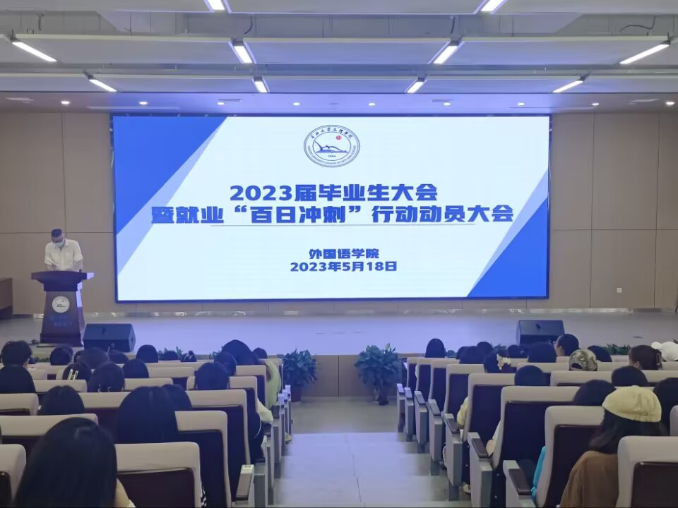 (通讯员 胡世丹 许静婷)为做好2023届高校毕业生就业创业工作,进一步引导毕业生树立正确就业观,促进毕业生明确自我定位、明晰就业形势,引导其顺利完成毕业离校前前各项工作流程,外国语学院于5月18日下午在教学楼B-112学术报告厅召开2023届毕业生大会暨就业“百日冲刺”行动动员大会。外国语学院党总支书记王玲玲、副书记刘鋆锋、罗丹副院长、毕业生辅导员、往届毕业生及全体2023届毕业生到场参加。
