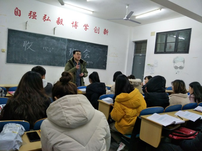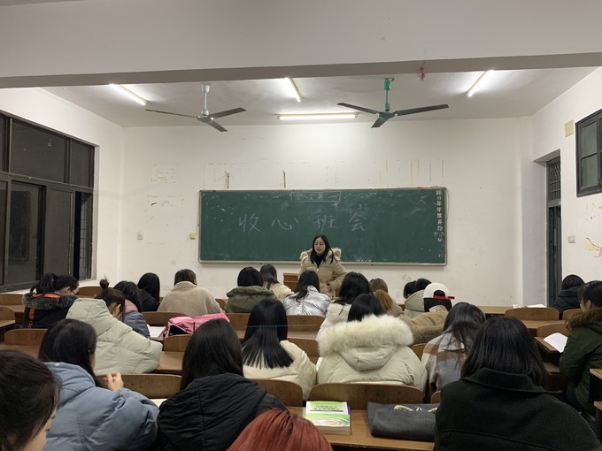 在英日5171班的收心班会上,辅导员梅曼曼老师聆听同学们交流寒假的收获和新学期的计划,她勉励大家新学期继续努力,充分利用早晚自习时间多记多背,刻苦学习,努力攻克专四难关。