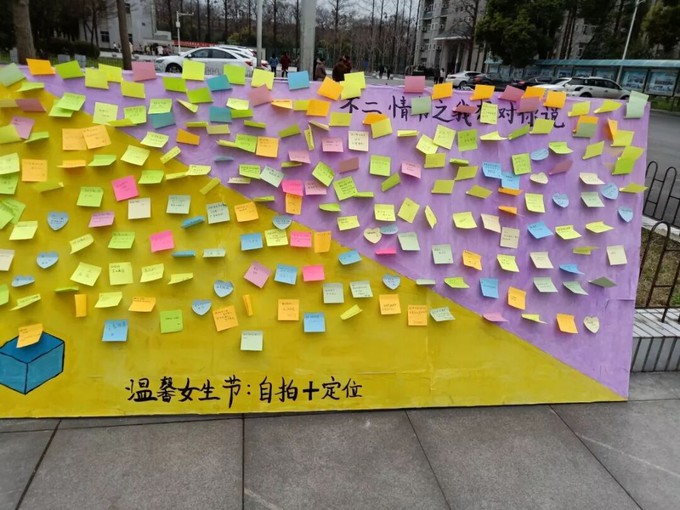 在“不二情书之我想对你说”活动中,女生们写满了祝福的卡片,在学生会工作人员的协助下,亲手把卡片贴在签字板上,将祝福传递给每一位同学。在“温馨女生节活动”中,同学们积极展现自我,通过集赞的形式,让每一位同学都参与其中,更让每一个女生在女生节这个属于自己的节日里拥有一个美好的回忆,度过一个舒心、愉快的佳节。