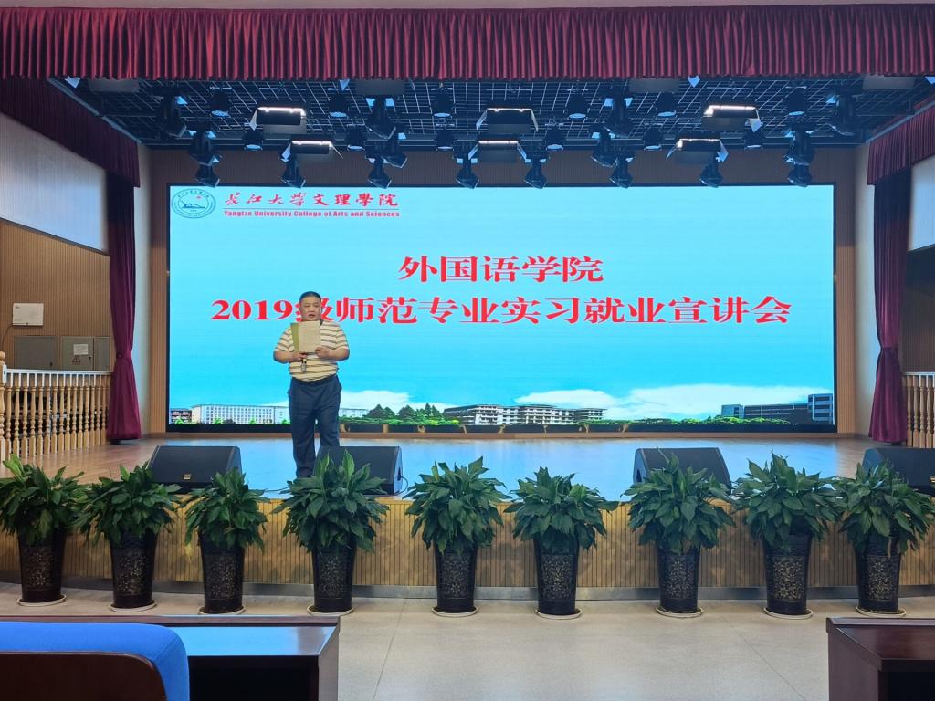 (通讯员 沈敏) 5月23日晚,广州广畅教育科技有限公司董事长褚继红来我院开展2019级师范专业实习就业宣讲会。外国语学院党总支书记刘美林、副院长罗丹、辅导员出席,2019级学生参加本次宣讲会。