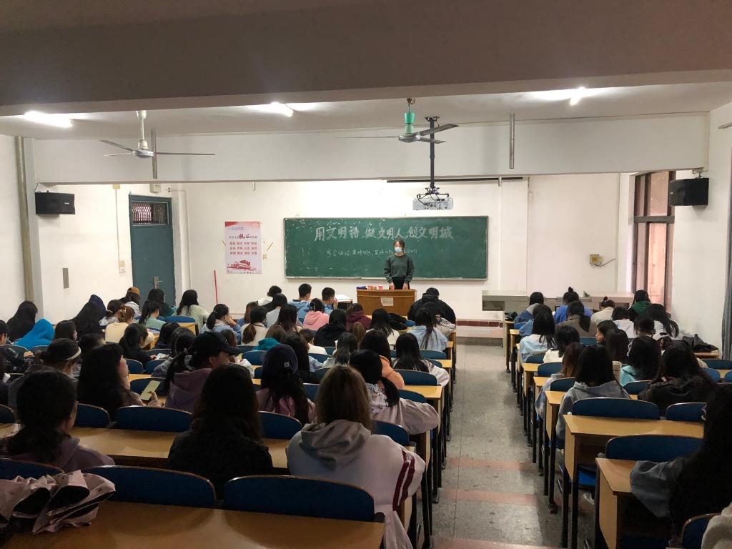 (通讯员 韩小红)为切实巩固荆州中心城区教育系统文明创建成果,营造文明风气,外国语学院于10月17日晚7点开展“用文明语、做文明人、创文明城”主题班会。本次班会由各班班主任、辅导员主持开展。