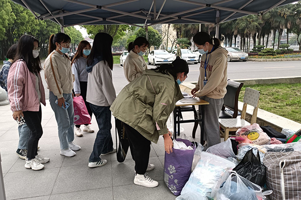 本网讯 4月12日至16日,外国语学院学生党支部向全院师生发出向偏远地区儿童献爱心的倡议。接到倡议后,16日下午,各教学单位师生纷纷积极响应,踊跃捐献衣物近800斤。当天下午,外国语学院一批学生党员及学生干部将衣物分类整齐,统一代表学院捐赠给偏远地区学生。通讯员 拓颖 摄影报道