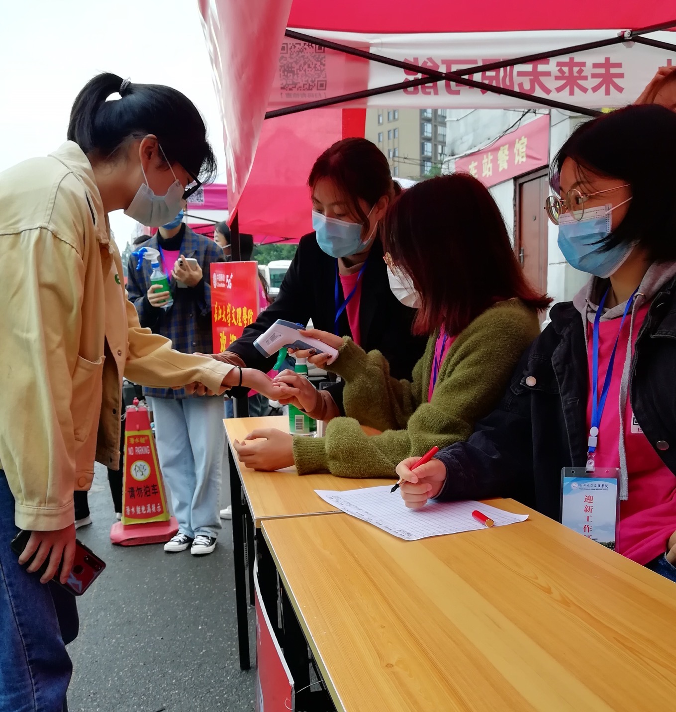 (通讯员 雷琦)2020年9月23日上午8点,为落实迎新工作,做好疫情防控,外国语学院秉承着老生服务新生“二对一”志愿特色服务的宗旨,组织全体同学齐力开展迎新工作。