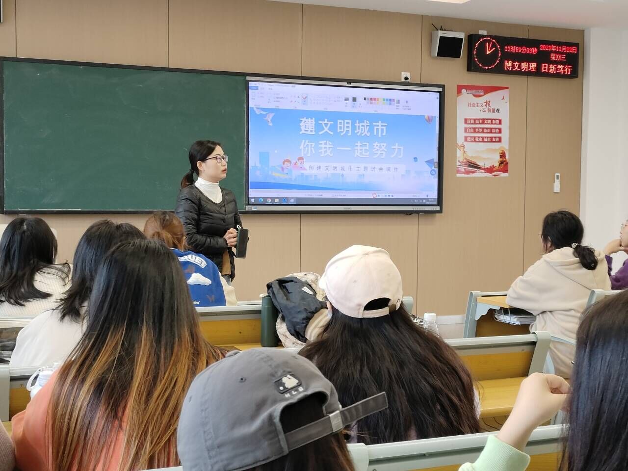 本网讯(通讯员 李雪娇)创建文明城市是现代社会发展的必然要求。一个文明的城市不仅代表着城市的整体形象和文化底蕴,更关乎居民的生活质量和社会的和谐发展。11月22日晚,外国语学院各班组织开展“创建文明城市,共建美好家园”主题班会。