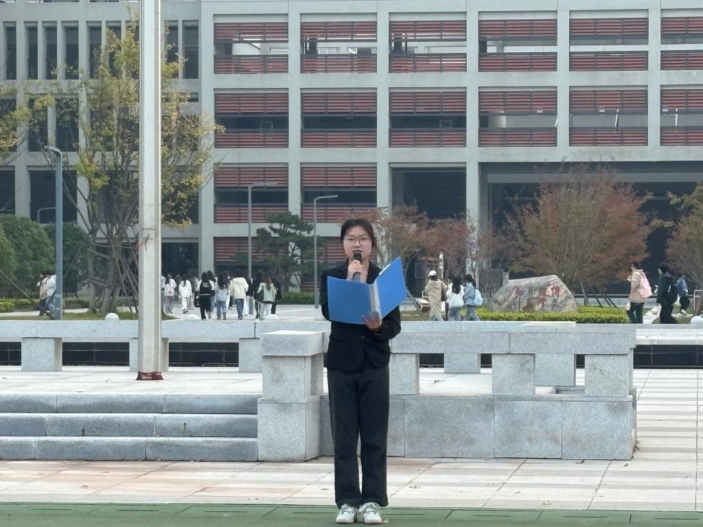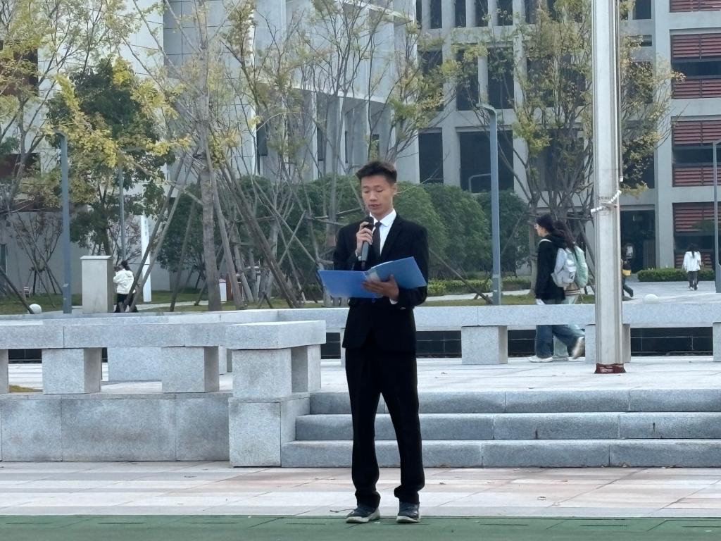 随后,学生代表苏悦发言。苏悦同学号召我们要奋斗不息,面对困难不停止前进的脚步。接着,教职工代表钟燚老师发言。鼓励同学们以青春之小我,书写强国之大我,在实现中华民族伟大复兴的征程中,绽放属于自己的璀璨光芒。