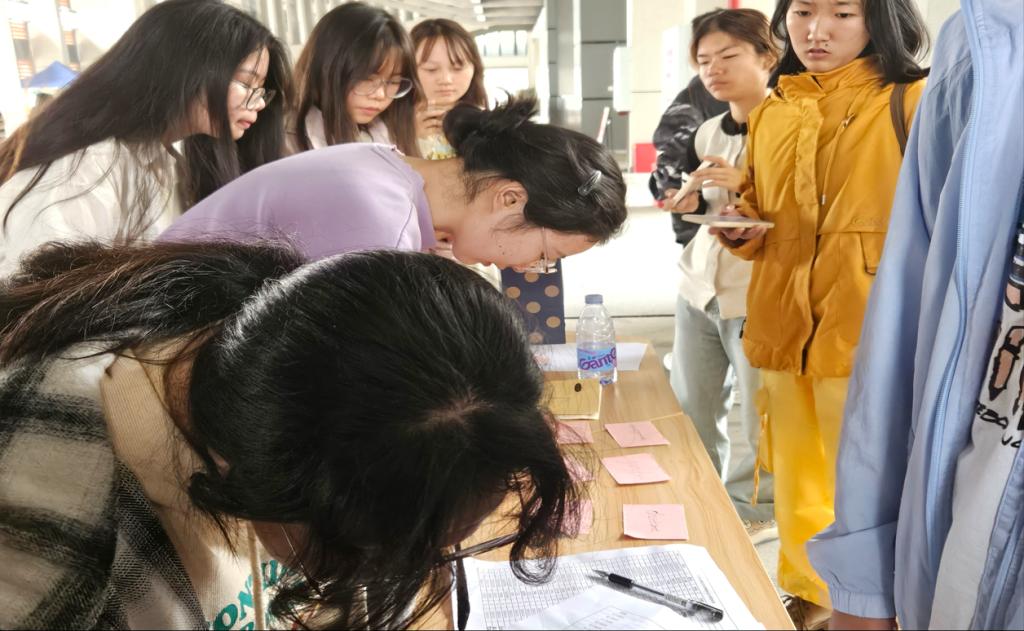 活动在同学们热烈的掌声中展开。首先,在外国语学院范围内以班级为单位征集“接纳自我”、“好好生活”、“积极向上”等主题的寄语明信片活动。随后,在新校区教学楼一楼大厅开展了“记忆考验”和“炸弹字卡”等班级团体赛,以及“速度与激情”和“记忆拼图挑战”个人赛等各种小游戏。此次活动的成功举行,使得同学们在欢声笑语中缓解了压力,加深了彼此间的情谊。此外,同学们还通过这次活动得到了身心的放松,学会了如何在忙碌中找到平衡,用更加阳光的心态迎接生活的每一个挑战。