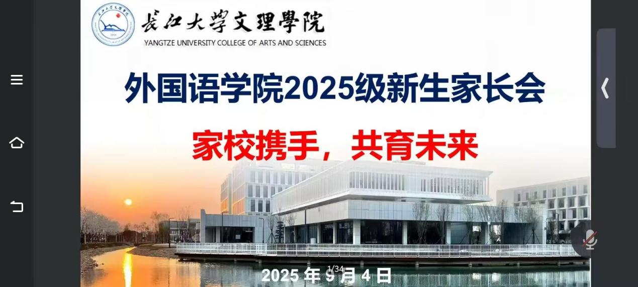 本网讯(通讯员 钟燚)为深化家校协同育人机制,凝聚教育合力,助力2025级新生顺利开启大学新生活,9月4日晚,外国语学院以“家校携手,共育未来”为主题,成功举办了2025级新生线上家长会。会议通过线上平台举行,吸引了数百名新生家长积极参与。