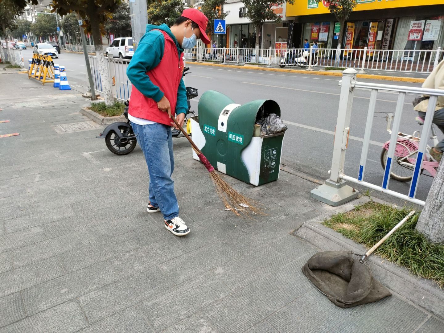 服务期间,志愿者两人一组分守在各个值勤地点。志愿者们将不规范的共享车辆摆放整齐,帮助清洁工人打扫街道卫生,为市民指路,对非机动车和行人的越线停靠和不文明穿行马路的行为进行监督劝阻等。在川流不息的人群中,身着红色上衣标志的青年志愿者们俨然成为了路边一道别样的风景。他们以高度的社会责任感、昂扬的精神面貌展现了青年的良好形象。