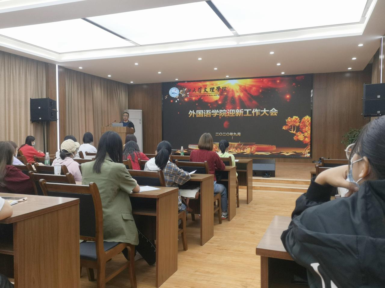 (通讯员 雷琦)2020年9月17日下午三点20分,为使各位学生党员和学生干部以饱满的工作热情、良好的精神状态迎接新生和对即将到来的迎新工作做好充分准备,外国语学院在3教408学术报告厅举行迎新暨志愿者培训会议。本次志愿者培训会议由外国语学院党总支书记刘美林主持,副书记刘鋆锋、各在校学生党员和学生干部参加。