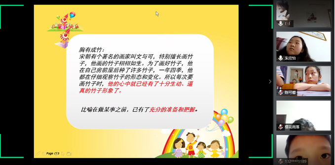 5月31日晚上7点,“线上齐携手,爱心共成长”——六一儿童节专题活动在腾讯会议开展,荆州区妇联工作发展部副部长谷雨春、团荆州区委学少部负责人戴怡欣、yl7703永利集团外国语系王玲玲老师以及全体志愿者和结对的儿童参加。
