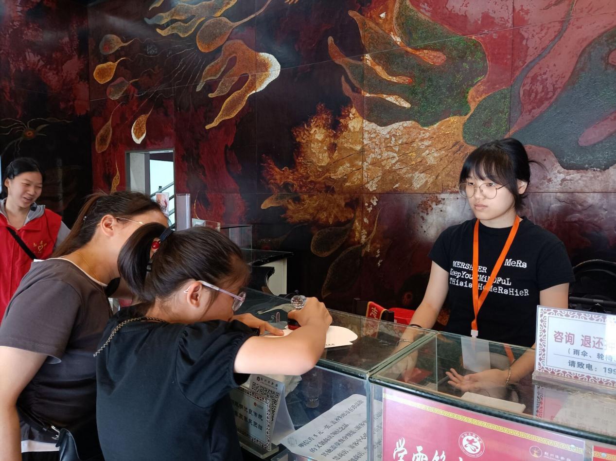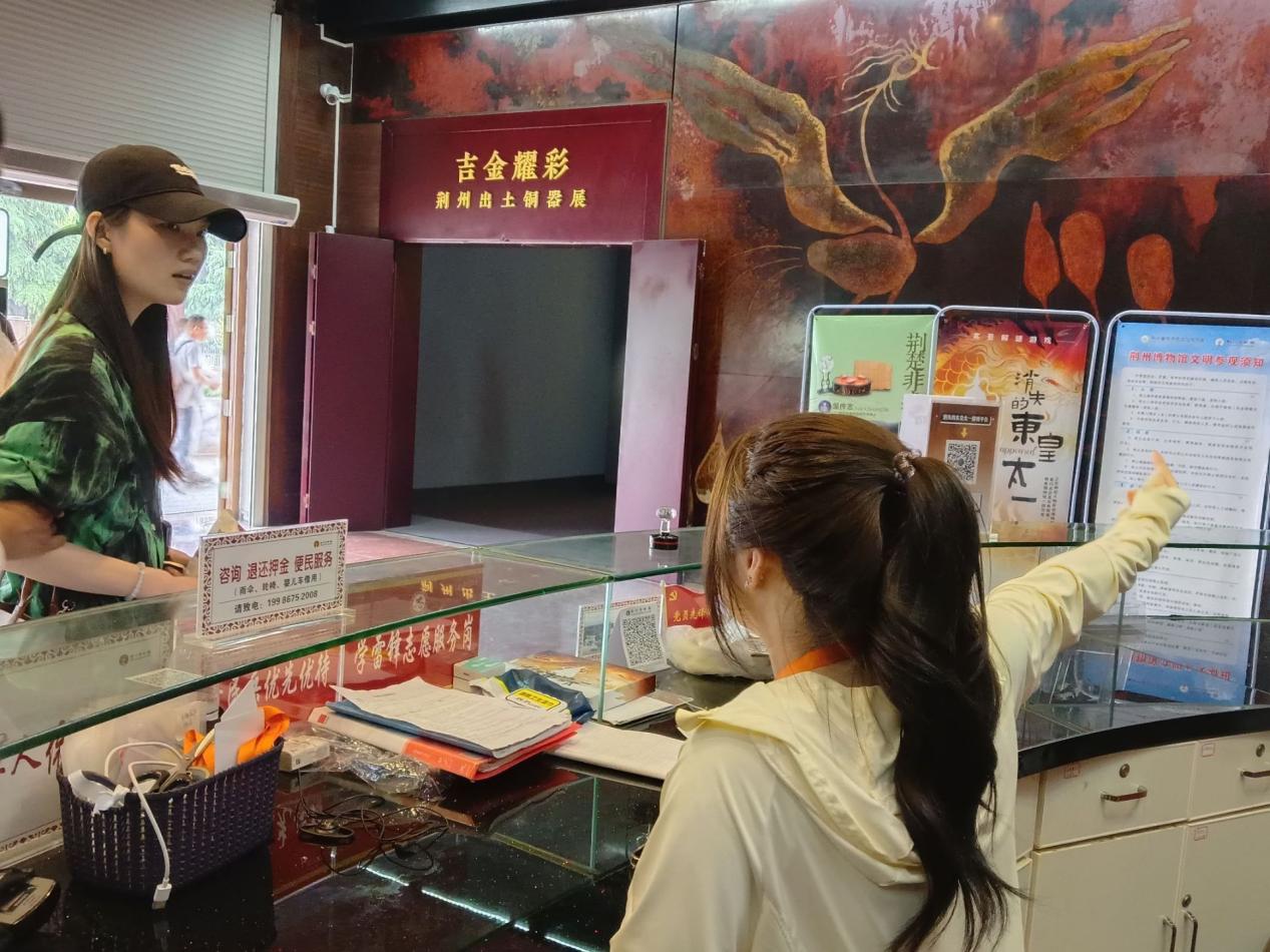 炎炎夏日,志愿者不畏酷暑,准时抵达荆州博物馆,在工作人员的带领下前往咨询台展开志愿服务工作。志愿者们就像坚固的桥梁,用他们耐心细致的讲解连接着人与人之间的心灵。他们用心传递温暖,用行动传播文明,加深着游客对博物馆文化的理解。