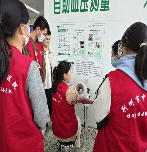 活动前,负责老师带志愿者熟悉医院的整体结构,详细讲解志愿服务的核心流程与注意事项,为后续活动开展做好了充足准备。导诊工作中,志愿者在门诊大厅协助挂号、缴费、就医,维护候诊秩序,为特殊患者提供轮椅护送,引导自测血压等帮助;儿童病房工作中,志愿者在征得家长同意后,带领小朋友们用医院提供的玩具做活动。