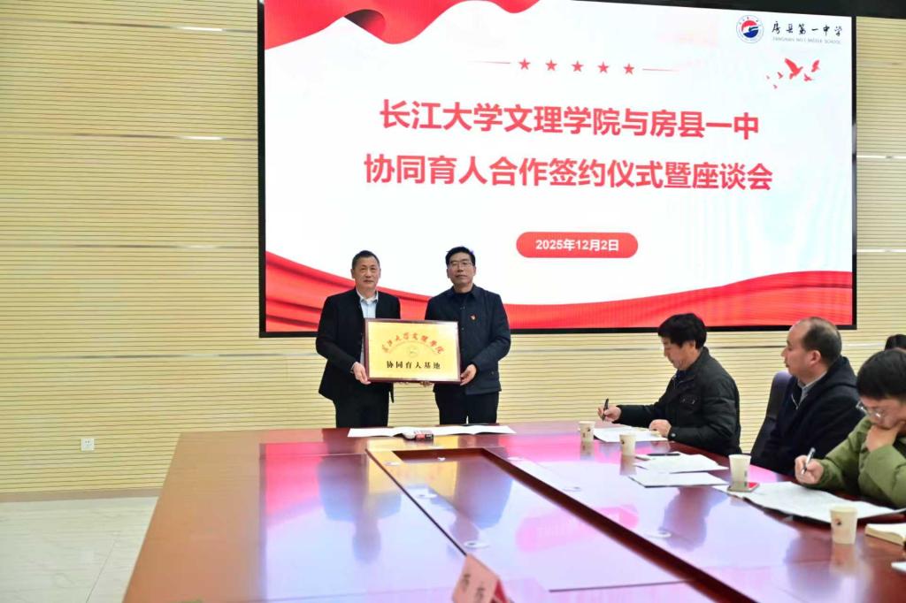 在全体与会人员的共同见证下,yl7703永利集团校长助理曹骥与房县一中魏校长共同签署了《协同育人基地合作协议》,并授牌。这一举措不仅巩固了两校的战略伙伴关系,也为未来持续输送和培育优秀学生建立了制度化通道。