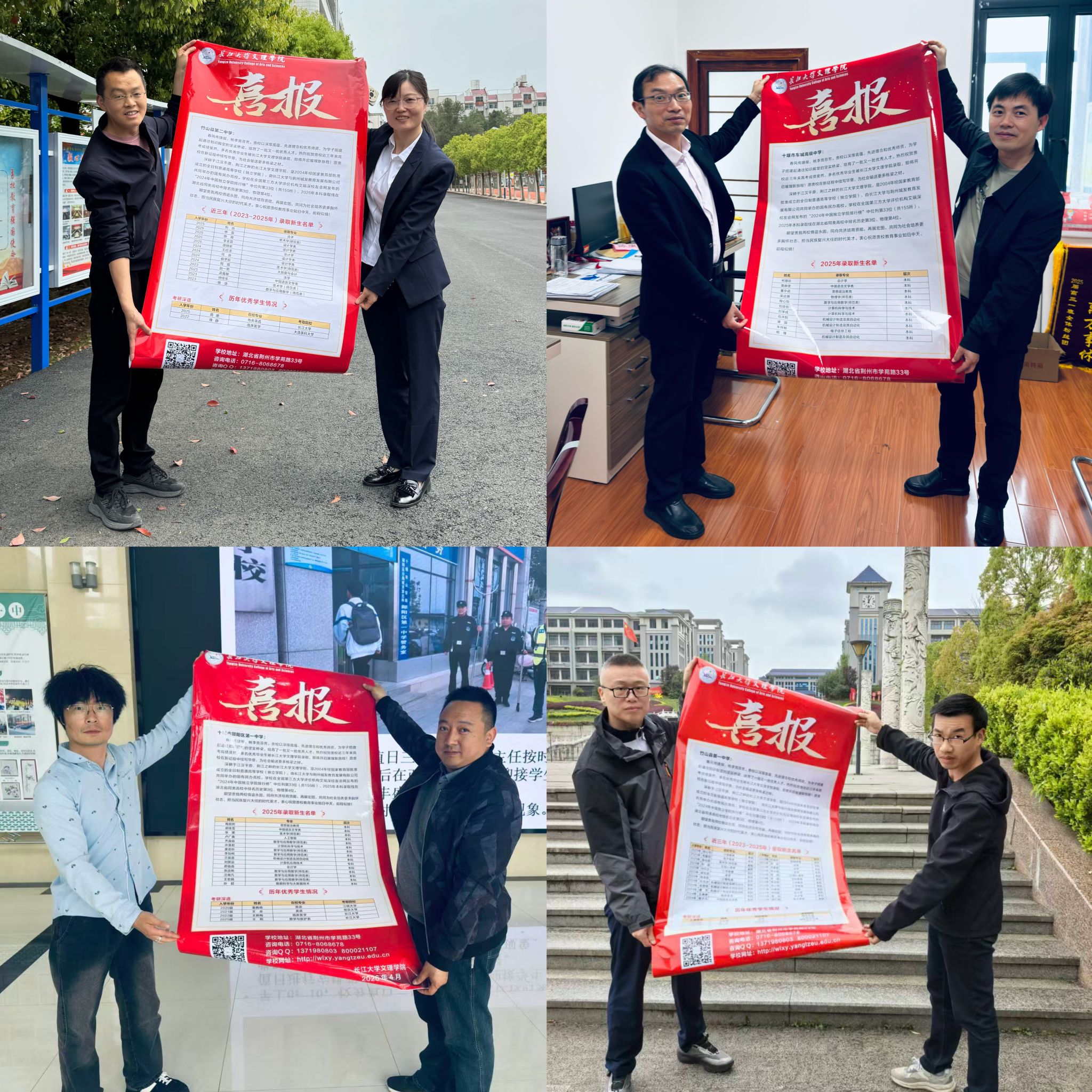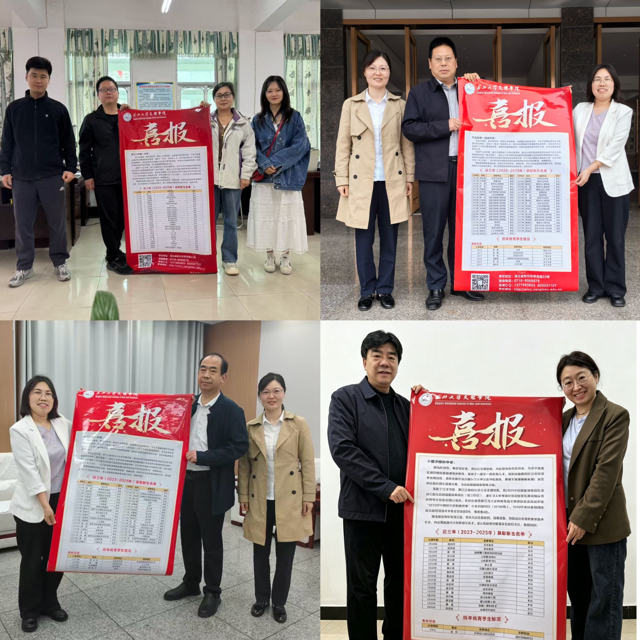 在慰问活动中,外国语学院向各高中送达了精心制作的喜报。喜报内容涵盖我院2025年录取新生名单,以及近年来在各高中输送的生源中表现优异的学生情况,充分展示了我院人才培养的成果与高中优质生源的突出表现。此举不仅是对合作高中教育质量的肯定,也进一步激发了高中学子奋发向上、立志成才的信心。