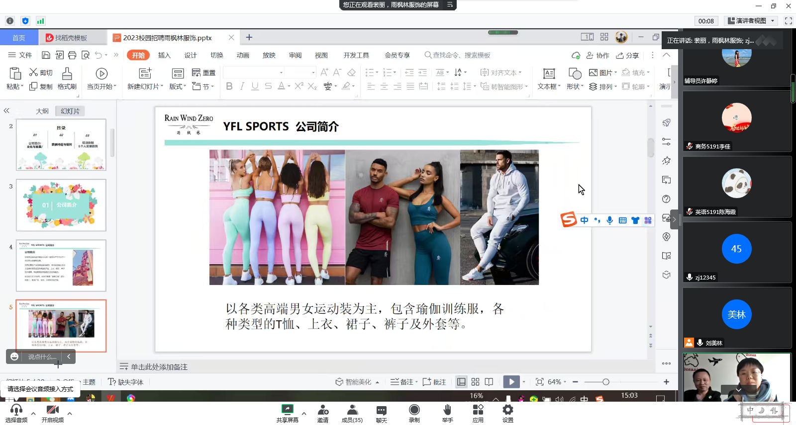 深圳、东莞等三家服装公司相关负责人从企业概况、岗位职责、薪资待遇、培训体系等方面进行介绍。并就学生关心的实习就业方面的问题进行答疑。