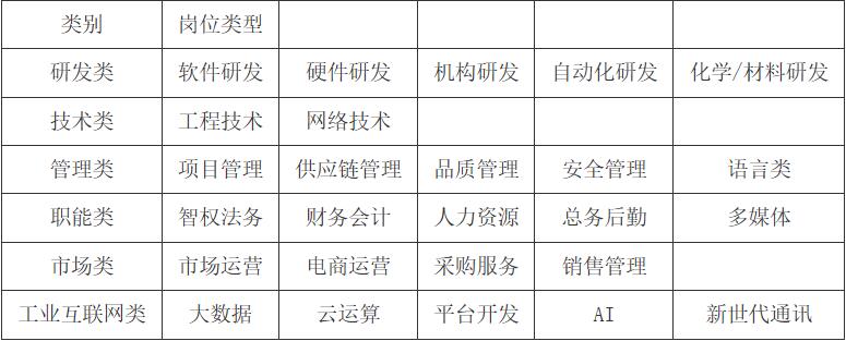招聘岗位:六大类岗位,数百个职位,涵盖工业互联网类、研发类、技术类、管理类、职能类、市场类