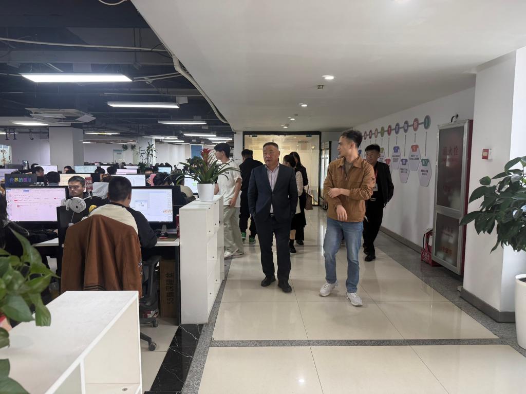 为深入了解义乌的产业生态与发展脉络,代表团在义乌方的陪同下,先后参观了义乌城市规划馆,系统学习了这座城市从“鸡毛换糖”到“买卖全球”的转型历程与战略布局;实地考察了义乌国际陆港电商城,切身感受全球电商产业链的集聚效应与创新活力;并走访了言睿网络科技有限公司等业内代表性企业,围绕跨境电商运营、数字营销技术、多语言服务需求等前沿议题进行了现场交流与深入探讨。