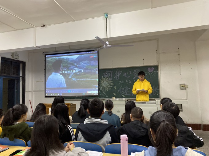 班会开始,心理委员向大家依次介绍了本次心理班会的四个主题:爱情、生命、自由与自杀,并着重为大家阐述了大学生自杀率逐年提高的严重性。为了使同学们更加明白心理健康的重要性,心理委员对同学们进行提问:“你觉得有真正的自由吗”、“你认为导致大学生自杀的原因有哪些”。 同学们反应积极,展开热烈的讨论,并发表了自己的意见和看法。